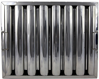 A series of vertical Stainless Steel vanes are housed in a channel frame, with each of the baffles strategically aligned to provide the highest potential for grease removal. Due to the smooth nature of the vanes the grease naturally runs downwards, through the drainage holes and into the collecting trays normally provided within the canopy holding casings.