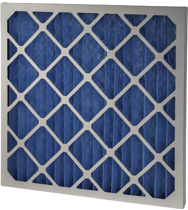 Construction: Water resistant card frame with lattice faces containing pleated polyester filter media reinforced with an expanded metal support grid.